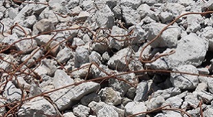 鉄くずが一緒になった瓦礫 -